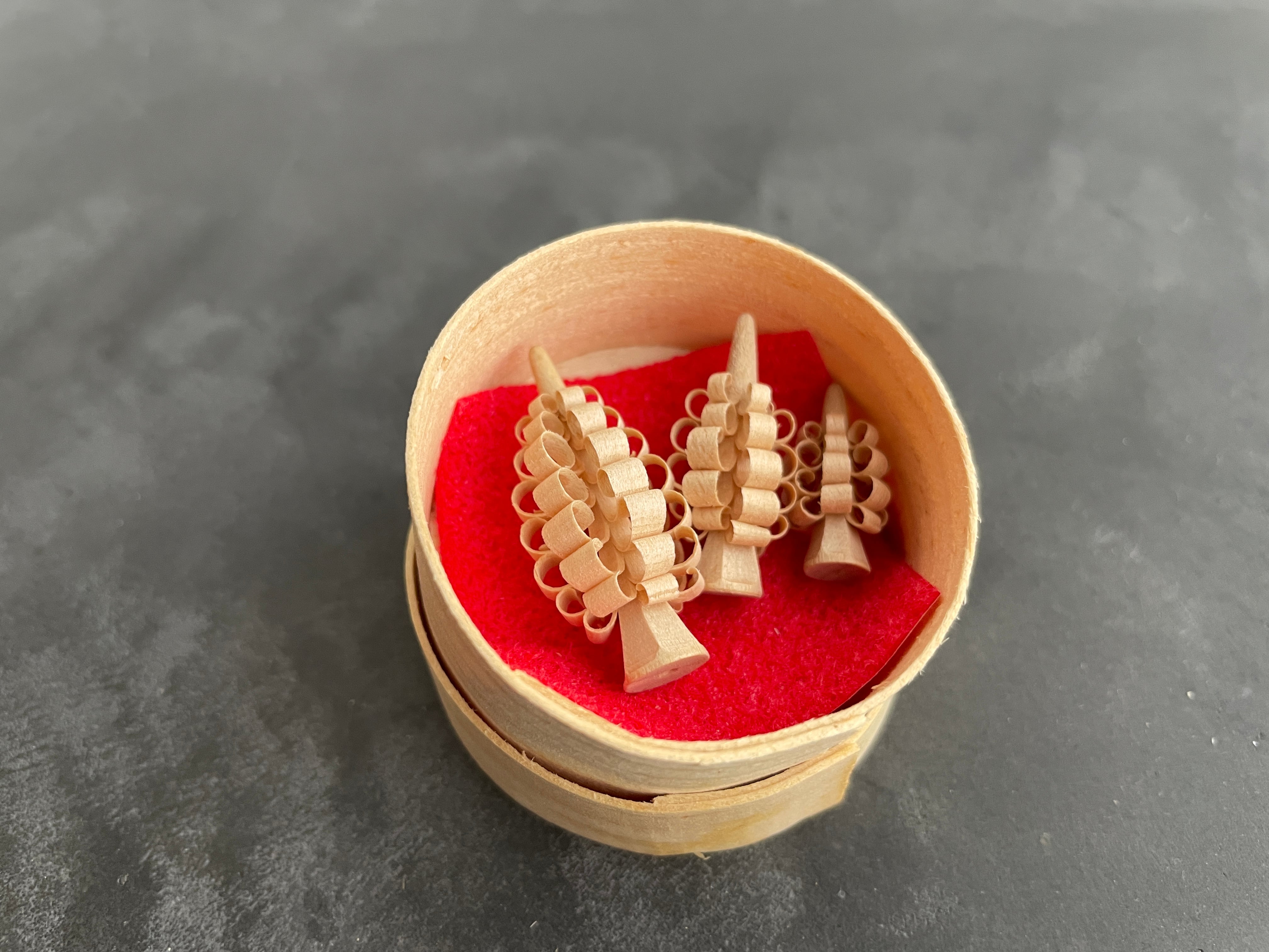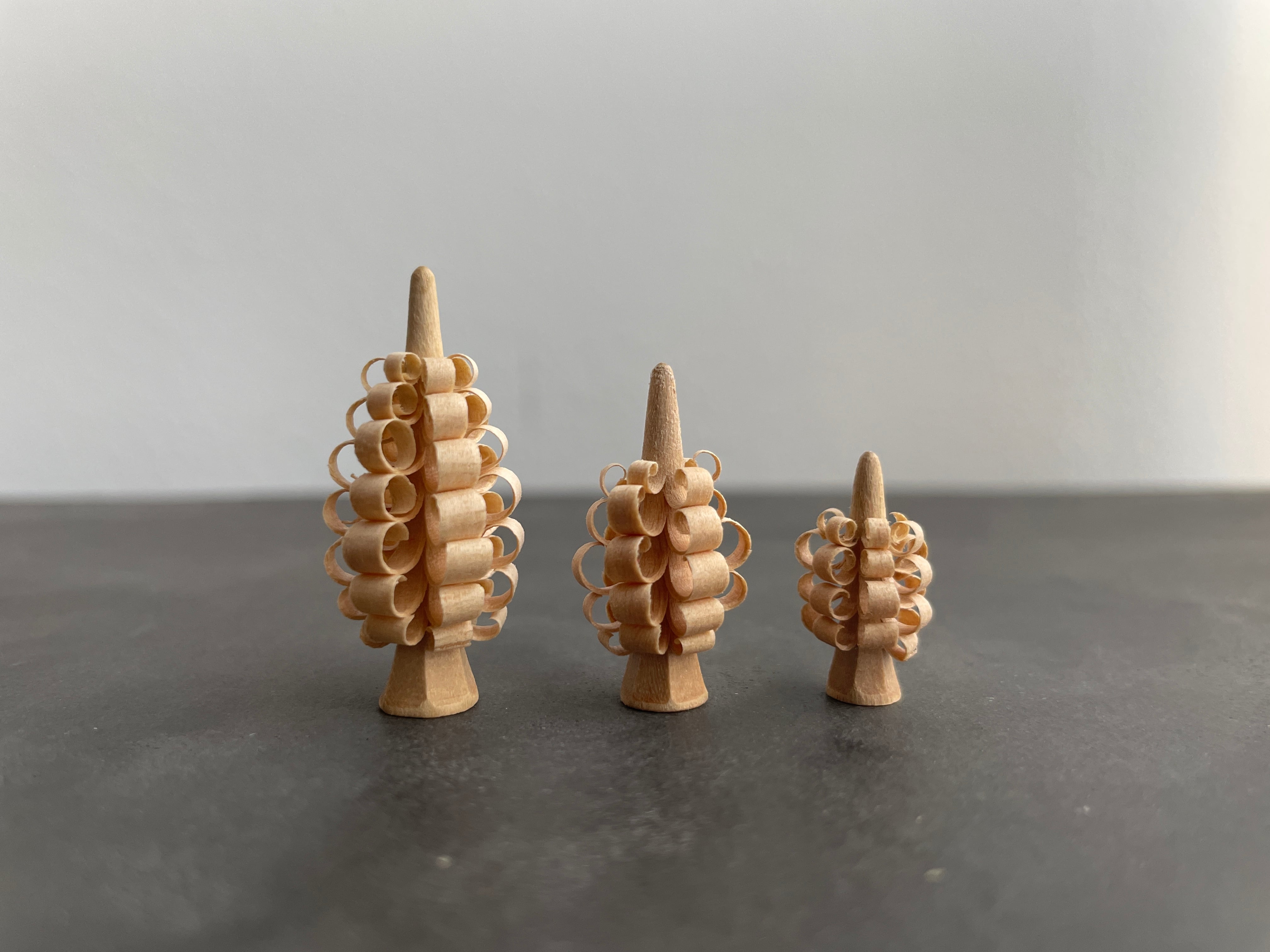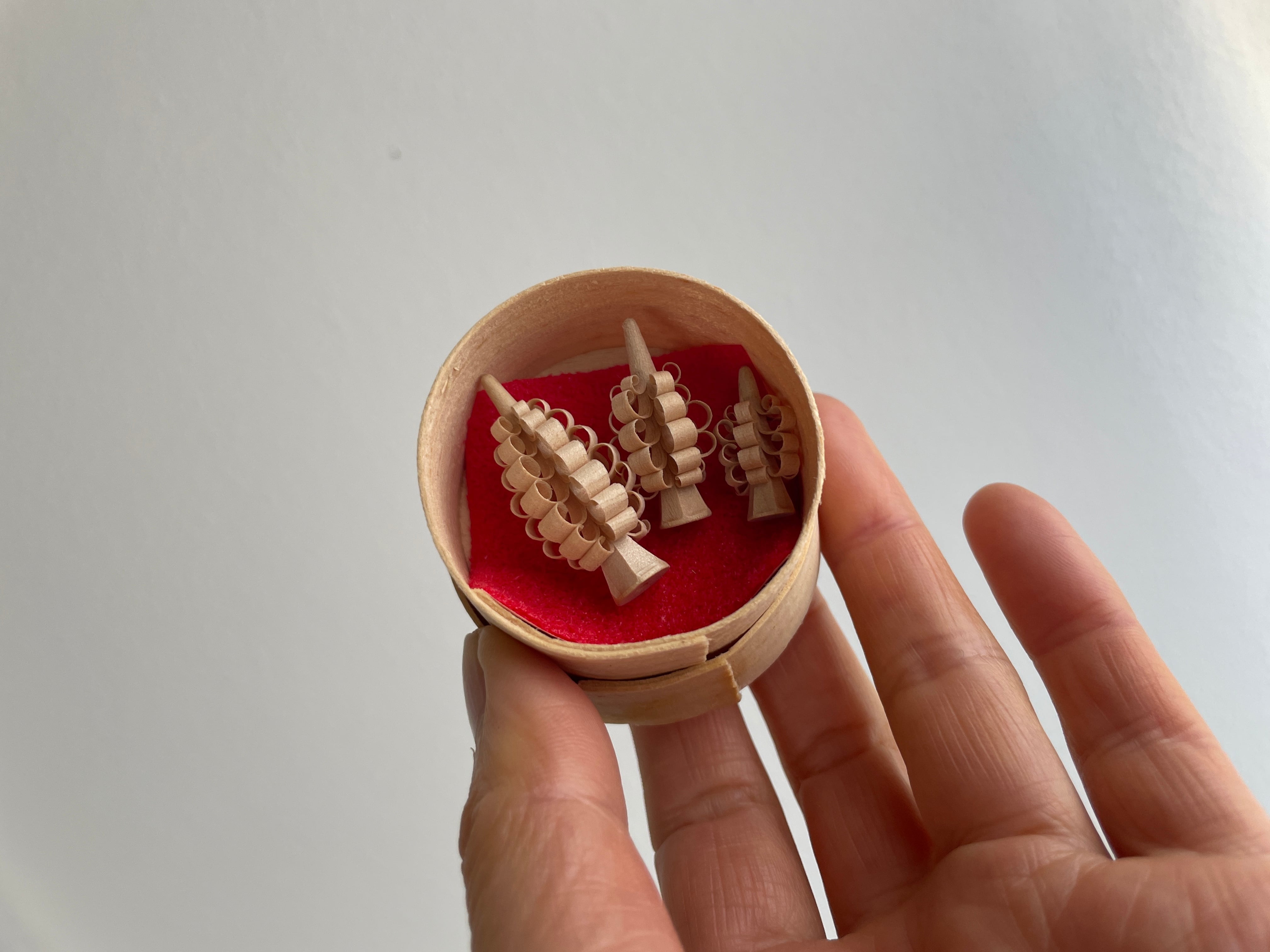 鉛筆のような細い木を、ノミでカールさせながら数ミリの薄さで削り形を整えて作られます。細やかな木彫りの技術は素晴らしく、思わず見入ってしまう美しさ。約400年の歴史があり、代々工房によって技術が受け継がれてきました。ひとつひとつ職人の手によってつくられるマイスターの技が光る木製のツリーです。クリスマスの季節だけではなく冬のインテリアとしておすすめです。